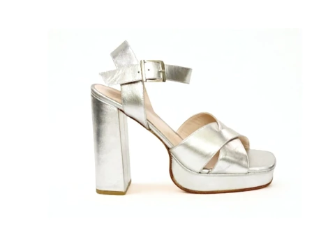 Sandalia en cuero vacuno y forrada del mismo. Taco cuadrado de 11 cm y plataforma de 3 cm.